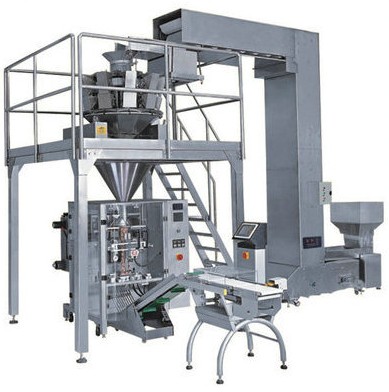 自動稱重包裝機的工作原理流程:當儲料斗中物料足夠,在重力的作用下進入重力供料裝置,完全打開料門進入大給料狀態(tài)。當?shù)竭_給定大給料重量時,關閉給料門,留一條狹縫,進入小給料狀態(tài)。當?shù)竭_給定小給料重量時,完全關閉給料門,經(jīng)過一定的空中落料,稱量斗穩(wěn)定,并且卡袋機構(gòu)卡緊時,卸料門打開,物料進入放料斗,再落入袋內(nèi),完成一個包裝循環(huán)。